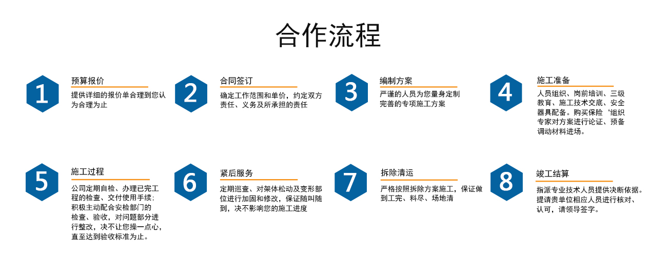 在充分追求客戶至上的基礎上,為用戶提供滿意的服務,是我們不變的追求。公司先后與安徽建工集團、湖南六建、中建一局、中建四局、中鐵四局、中城建、北京城建、淮南五建等多家大型企業合作,成功參與淮南市廣播電視臺、金色大地、泉大上東景城、淮南新體育館、信誼四季城、信誼金座、信誼頤園豪景、北京名都、廣弘城、陽光國際城、志高壹代城、世紀天成、淮河新城 ....